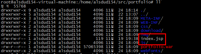 필자의 Tomcat은 alsdud154라는 계정으로 실행하기 때문에 다운받은 letletsencrypt의 권한을 alsdud154로 바꿔주었다.