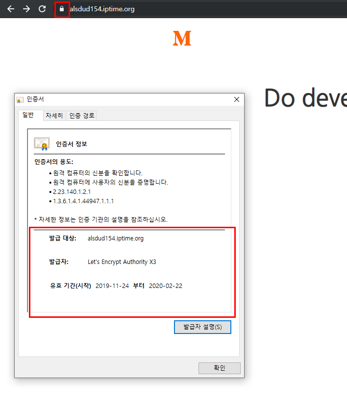 80포트로 도메인이 열려있어야 설치시 자동으로 임의의 위치에 확인용 txt를 생성 후 도메인에서 확인 후 인증서를 발급해준다.