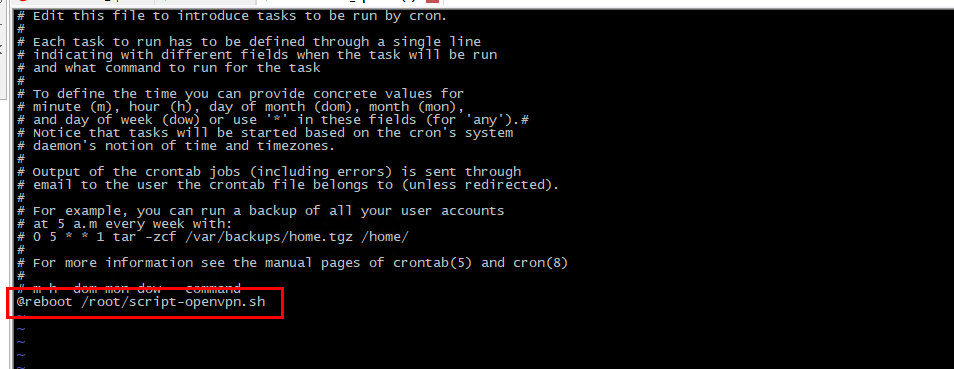 # crontab -e @reboot /root/script-openvpn.sh # reboot $ ifconfig