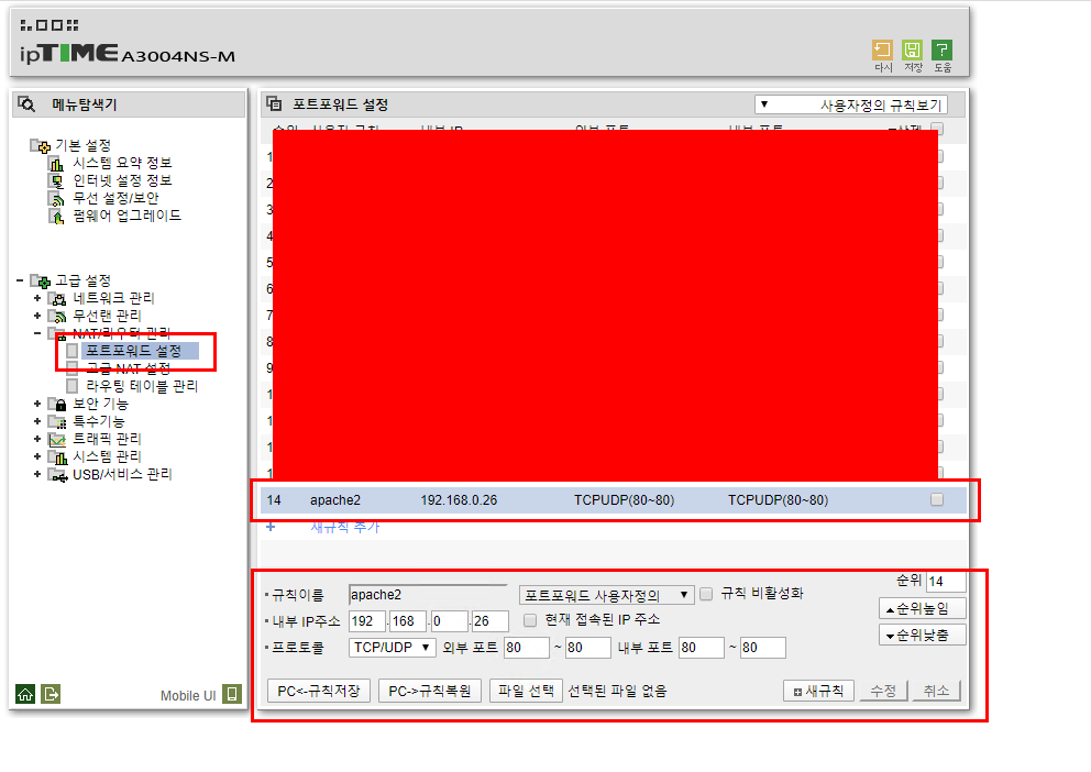 포트번호는 외부 내부 둘다 80으로 설정한다.
