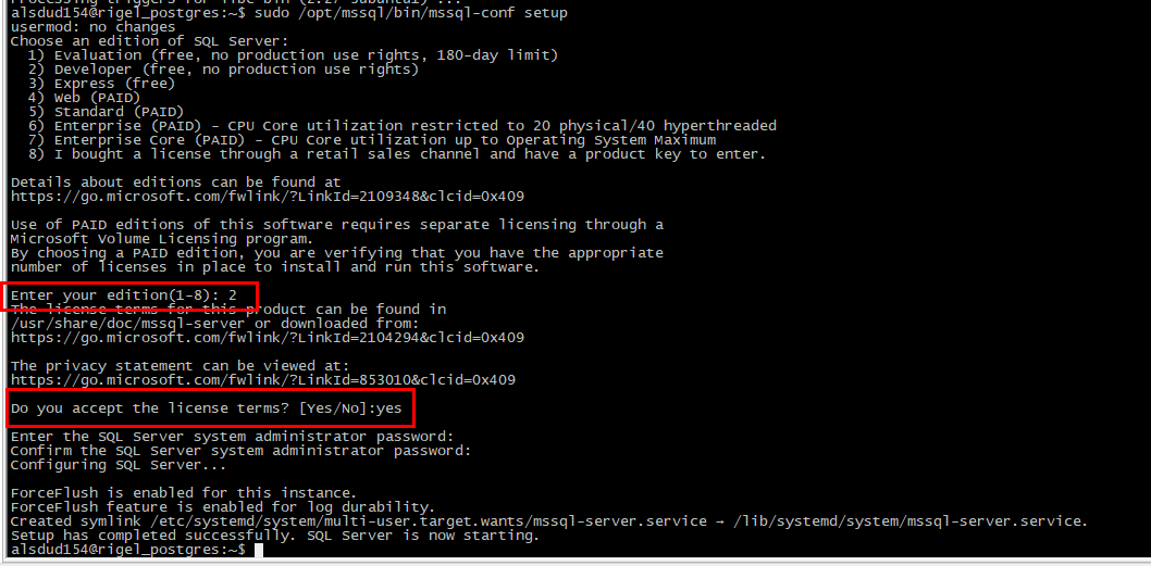$ sudo /opt/mssql/bin/mssql-conf setup