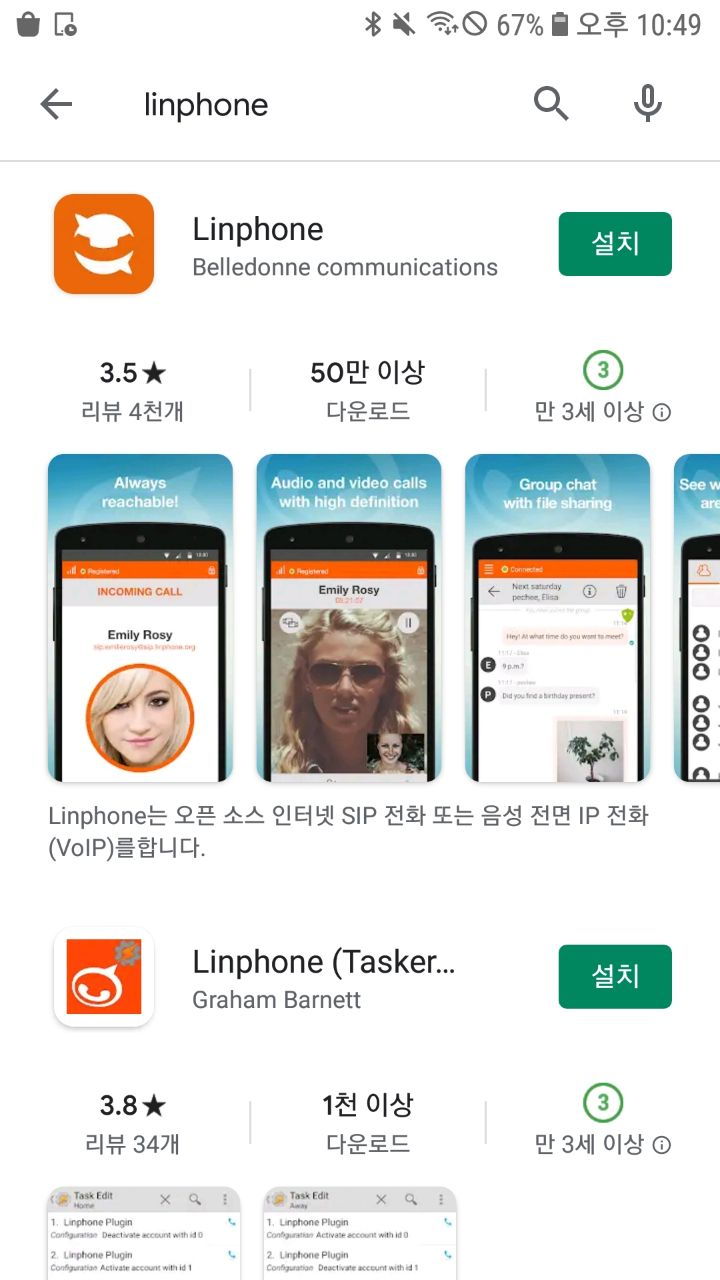 다음 A 폰으로 linphone을 설치한다.