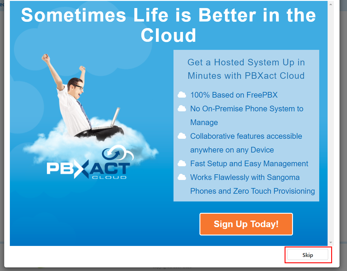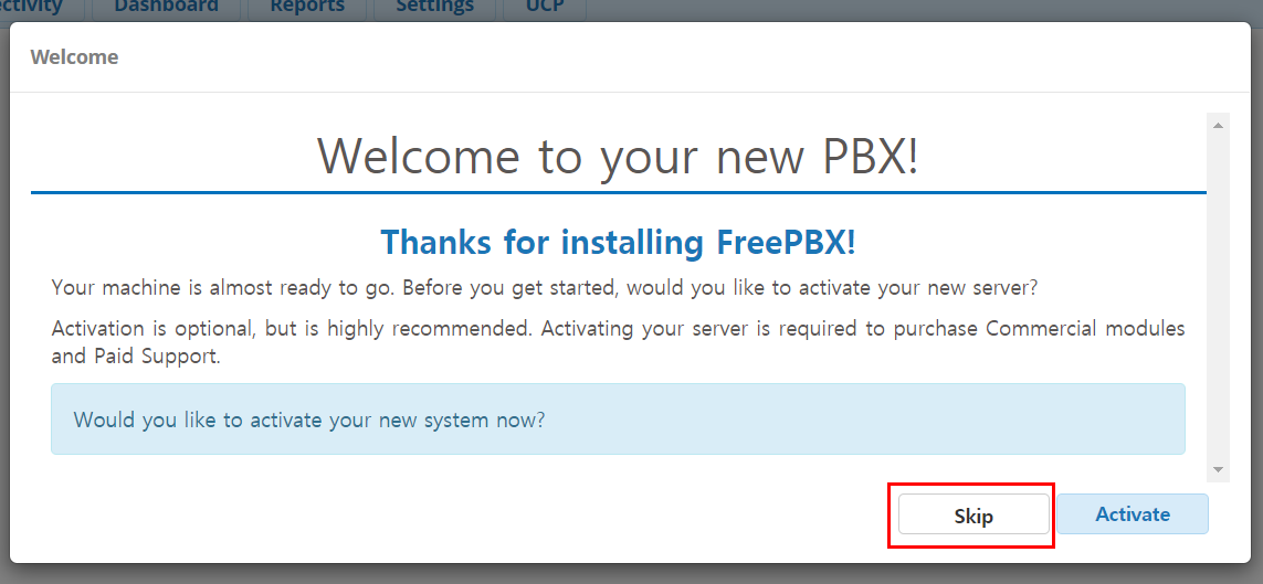 FreePBX가 설치된 IP로 접속 후 관리자 계정을 생성한다.