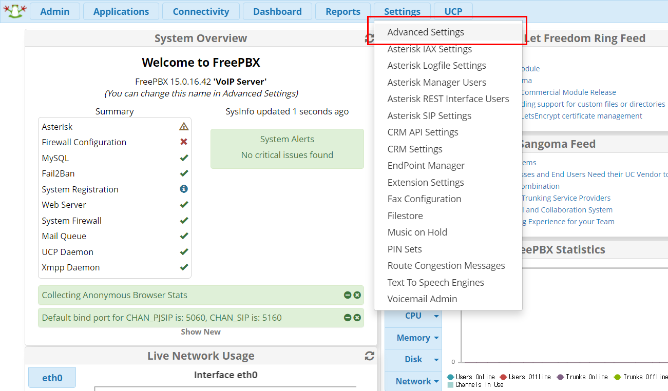 이번 포스팅에서는 무료 asterisk 서버(FreePBX)를 사용하여 음성통화, 영상통화를 서버를 구축하려고 한다.
