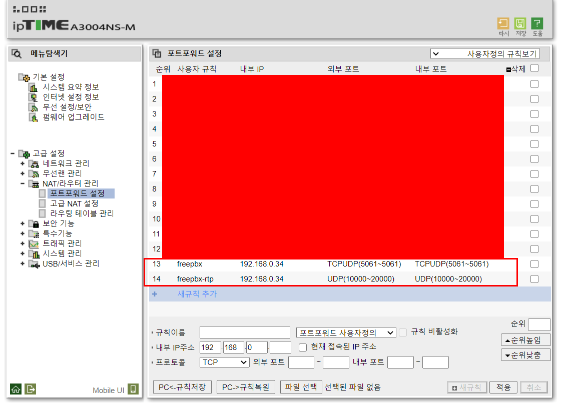 다음으로 포트포워딩 설정을 해야 한다.