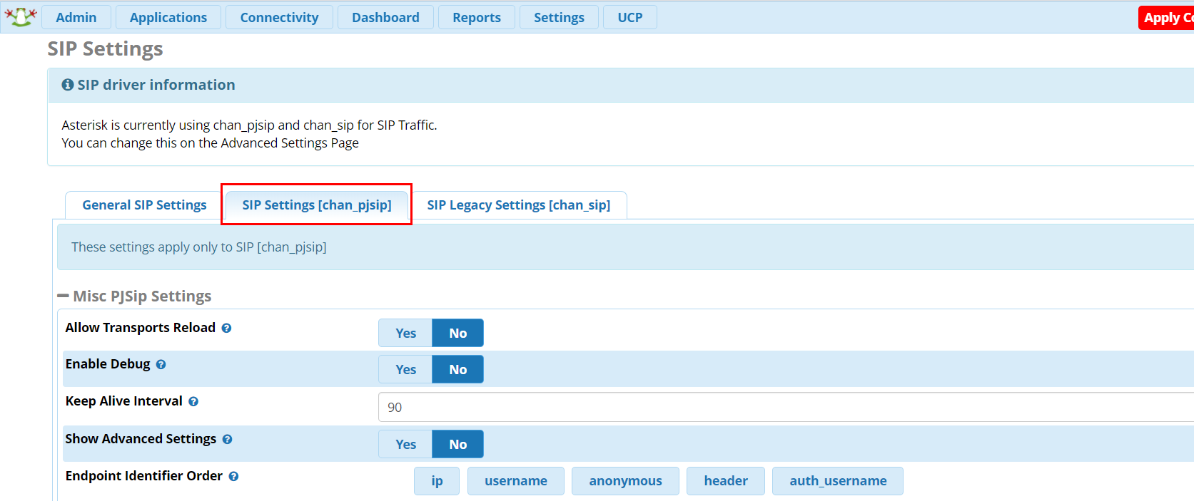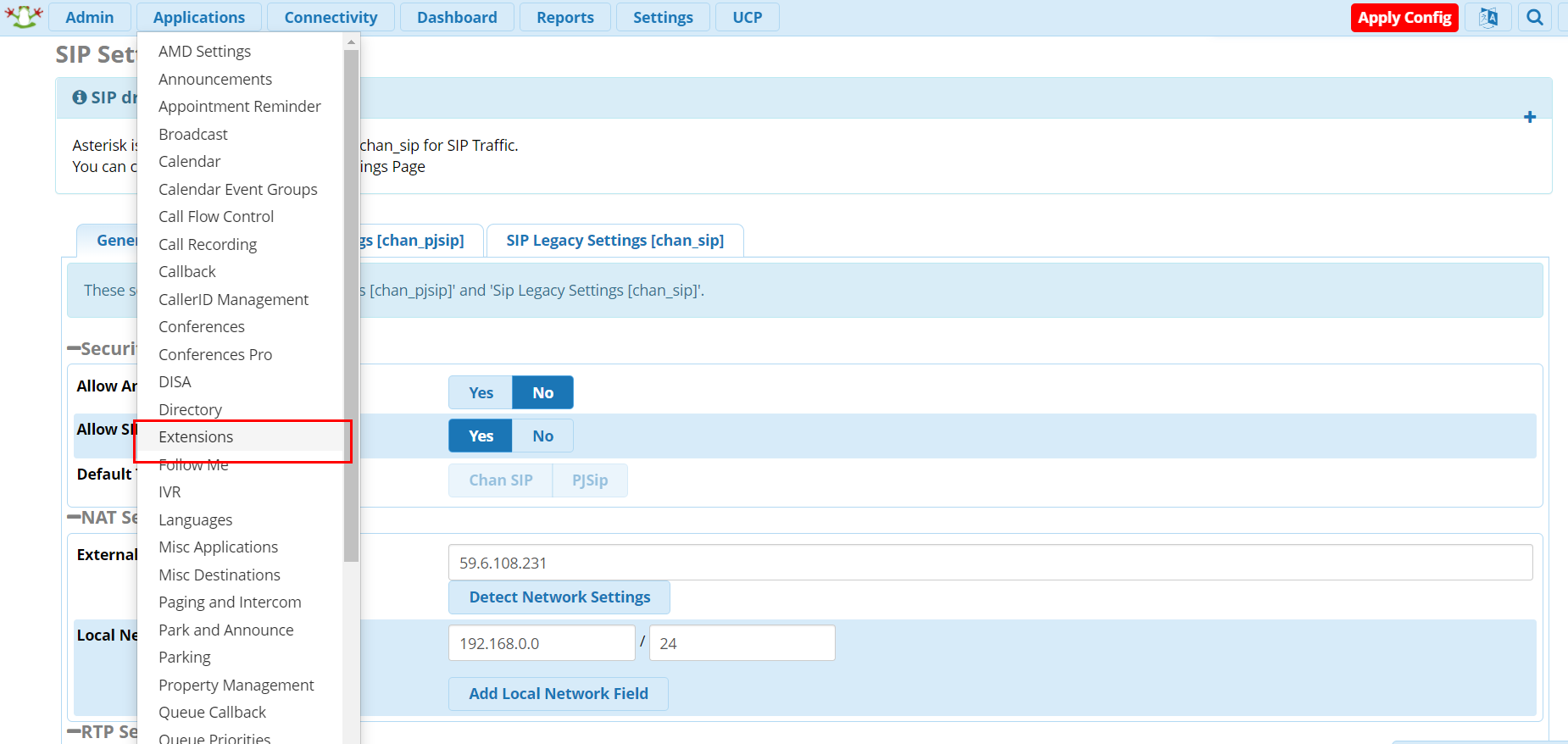 SIP Settings [chan_pjsip]로 이동한다.
