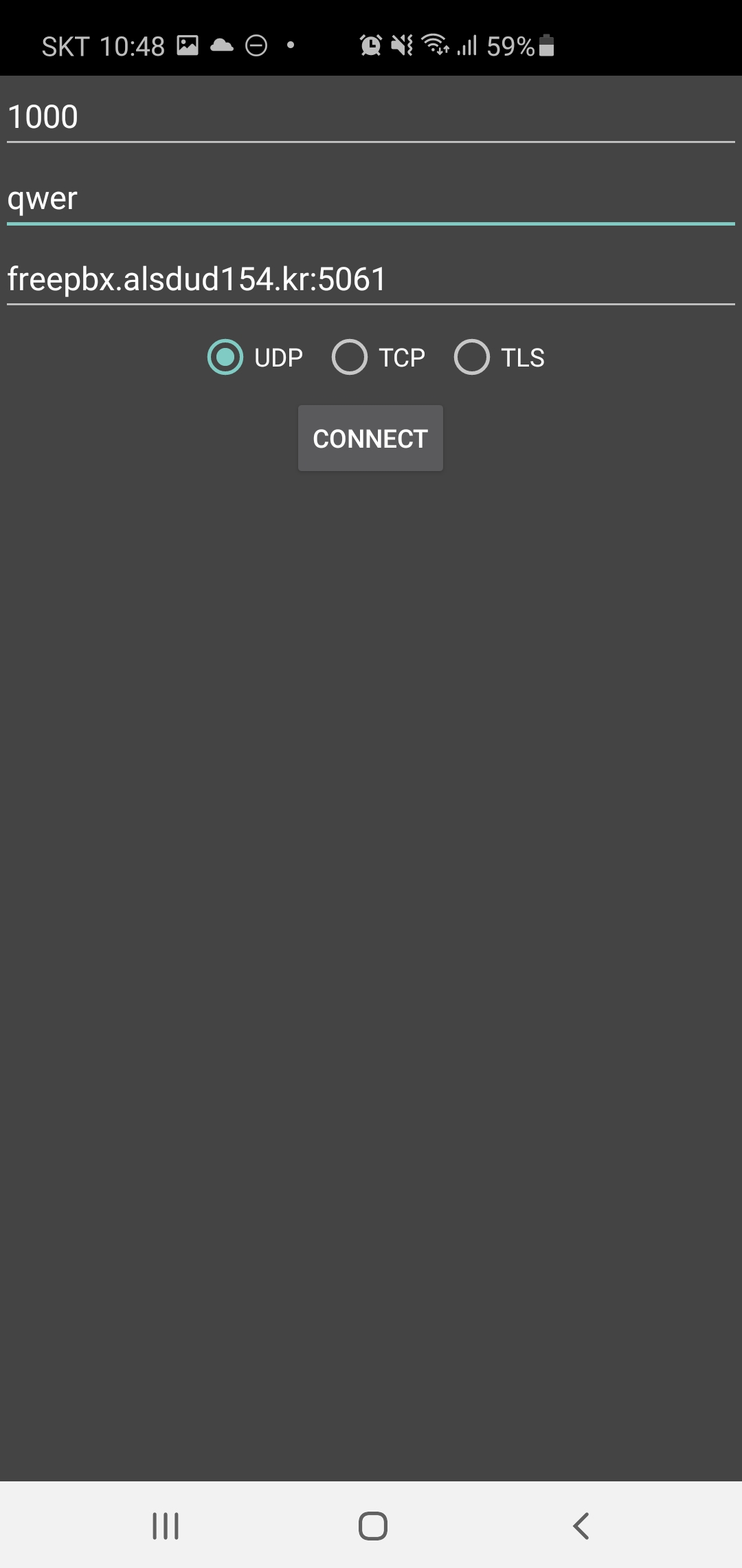 linphonesampleandroid-master.zip0.60MB아래와 같이 도메인, 계정 정보를 입력한다.
