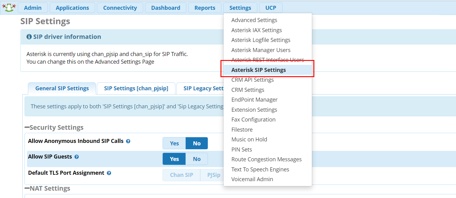 Asterisk SIP Settings에서 Video Codecs를 Enabled로 변경 후 저장한다.
