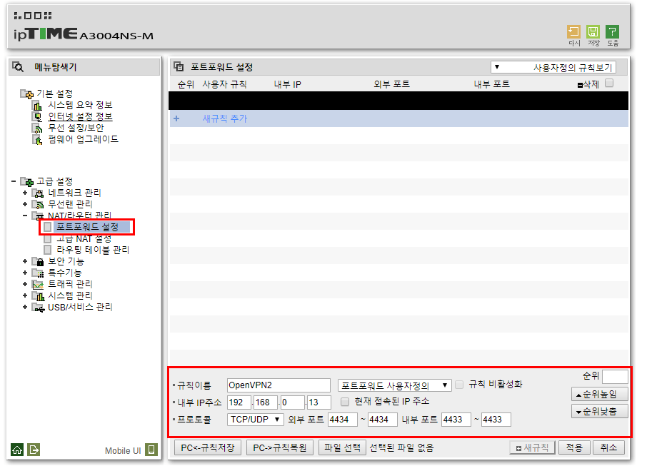 외부 포트는 내부 포트와 동일한 포트를 입력하는게 좋다.
