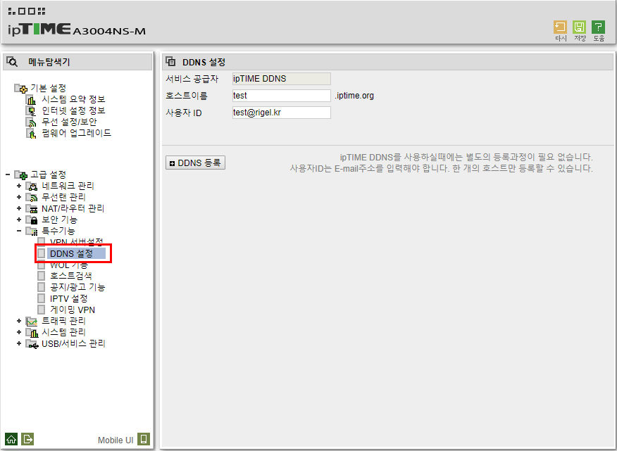 다음으로 iptime 외부 IP를 DDNS 설정을 한다.