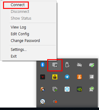 OpenVPN Client를 실행 후 해당 그림과 같이 Connect를 하면 된다.