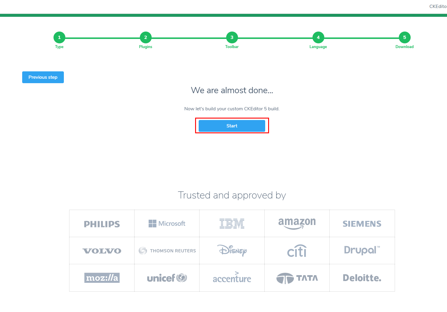 먼저 해당 사이트(ckeditor.com/ckeditor-5/online-builder/) 에 접속한다.