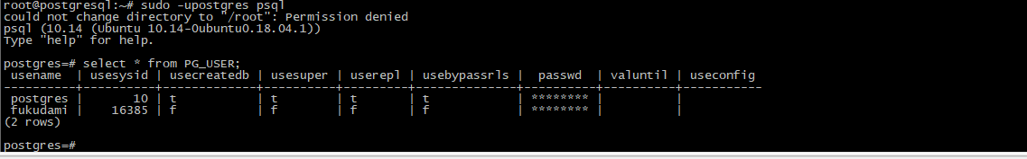 # apt-get install postgresql-10 -y # sudo -u postgres psql