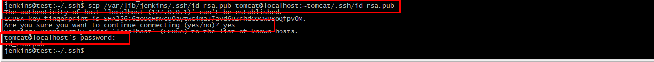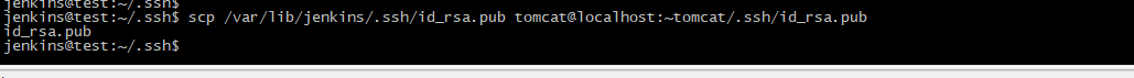 jenkins@~$ scp /var/lib/jenkins/.ssh/id_rsa.pub tomcat@localhost:~tomcat/.ssh/id_rsa.pub