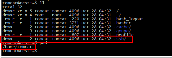 tomcat@~$ mkdir .ssh tomcat@~$ chmod 700 .ssh