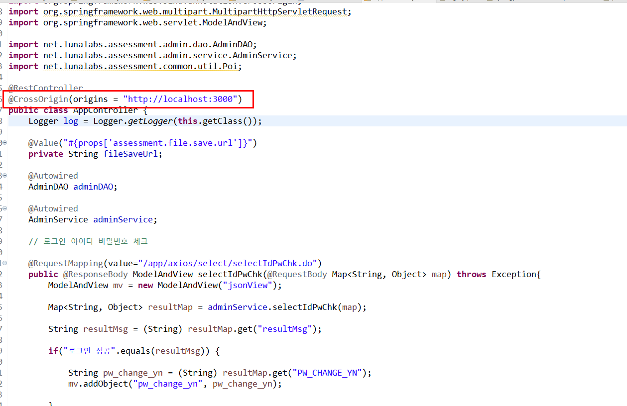 그 다음 해당 RestController에 CrossOrign 어너테이션을 설정하면 끝난다.