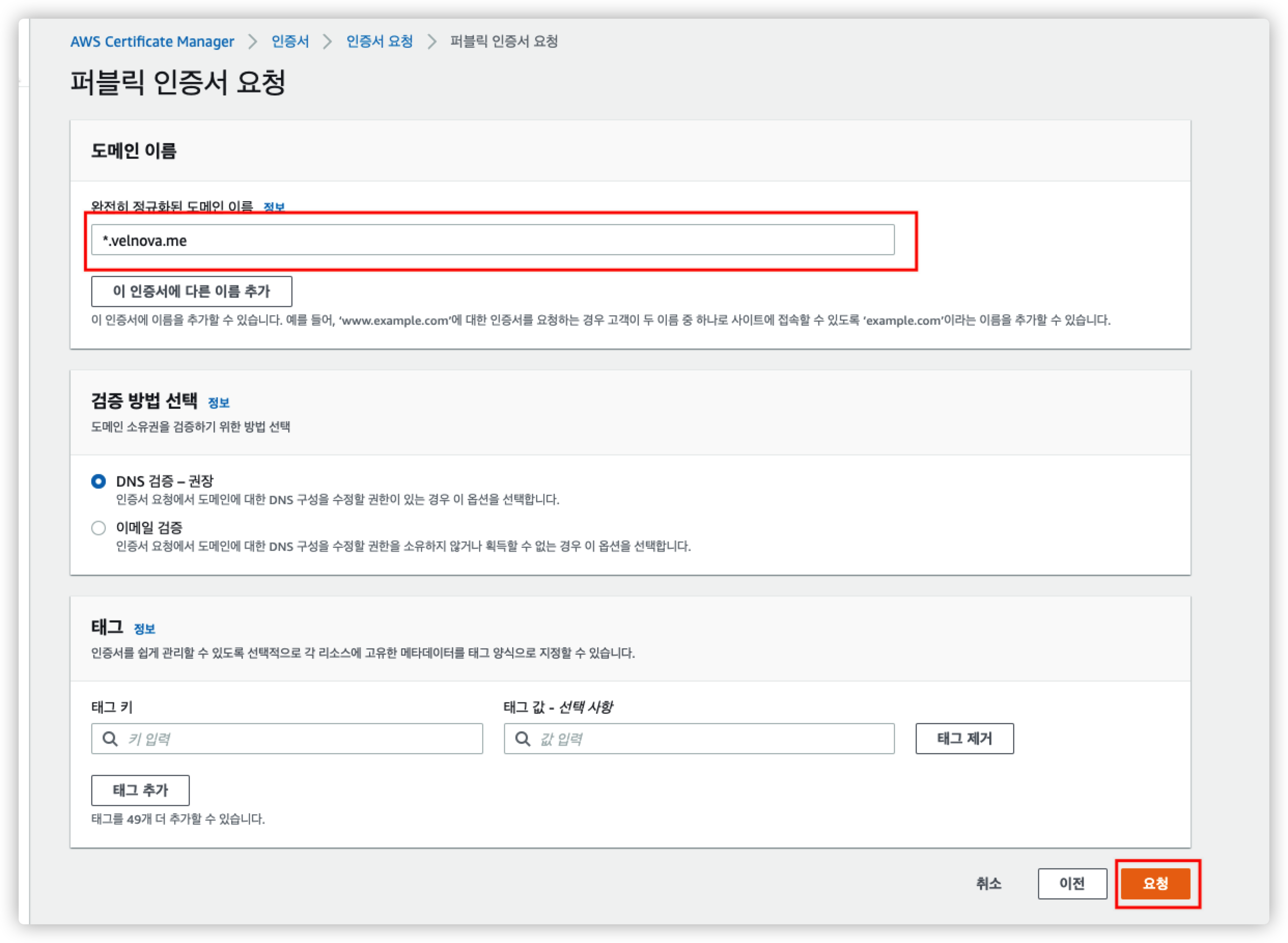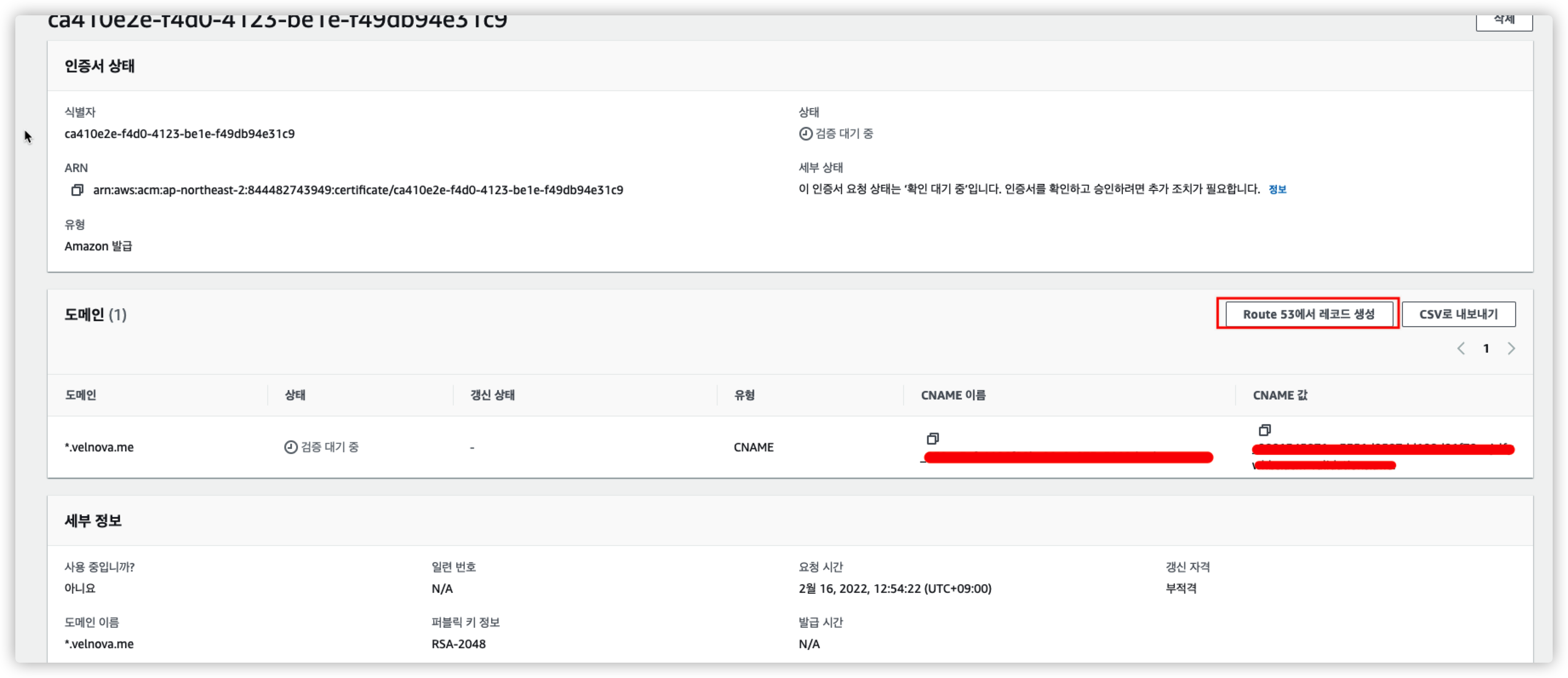 또 마지막으로 외부에서 구매한 도메인을 Route53 + ACM과 연동한다.