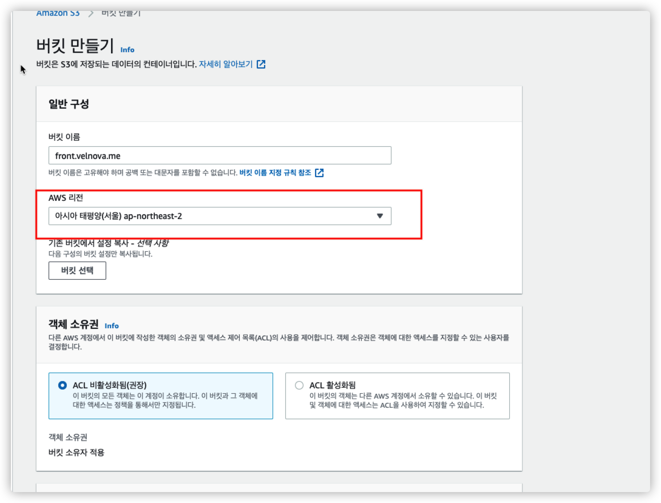 어려운 작업은 없다. 2022년 2월 16일 현재 기준으로는 버킷 이름만 입력 후 생성하면 된다.