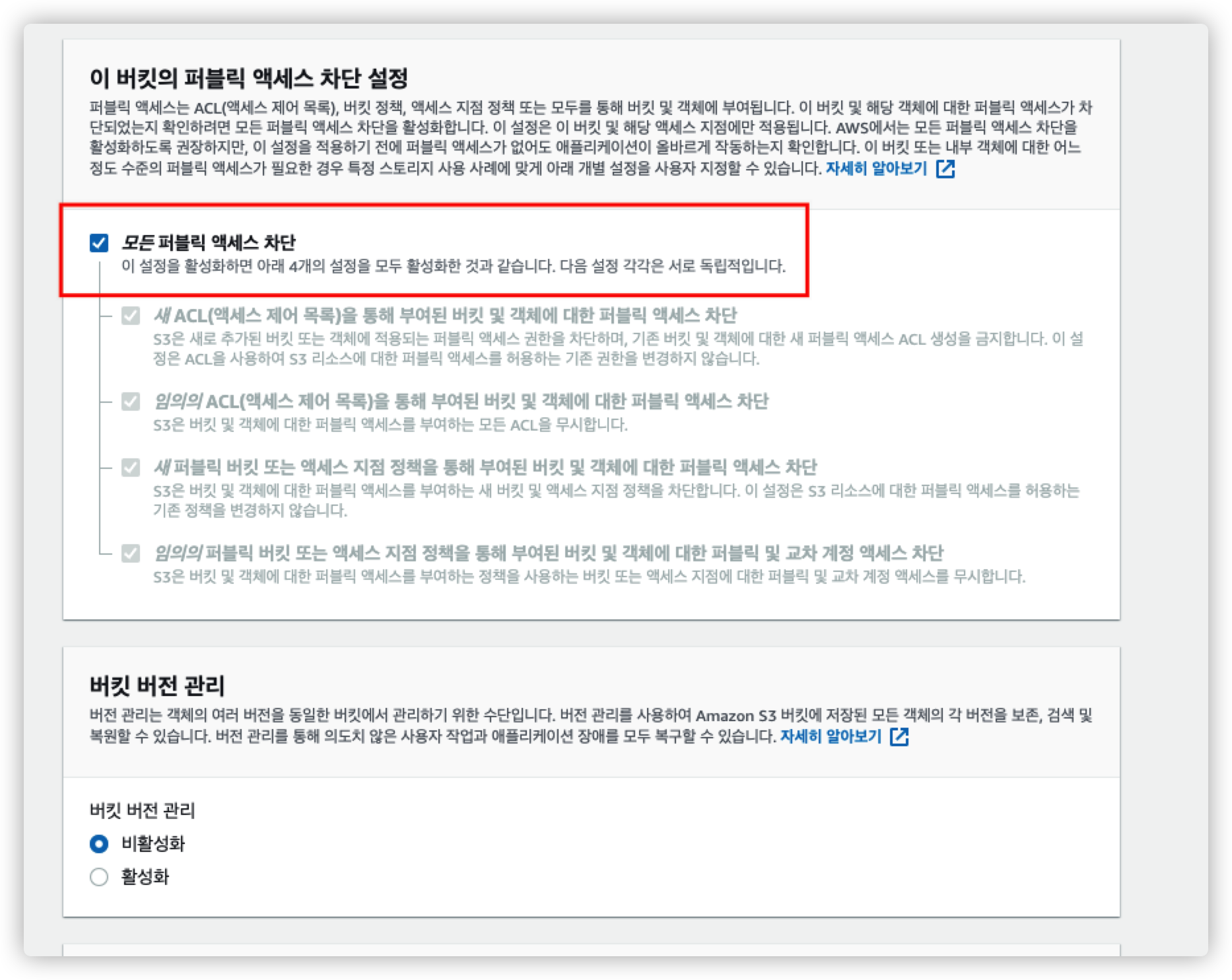 S3 버킷 도메인으로는 직접 접근하지 않을 것으로 꼭 퍼블릭 엑세스를 차단하자.
