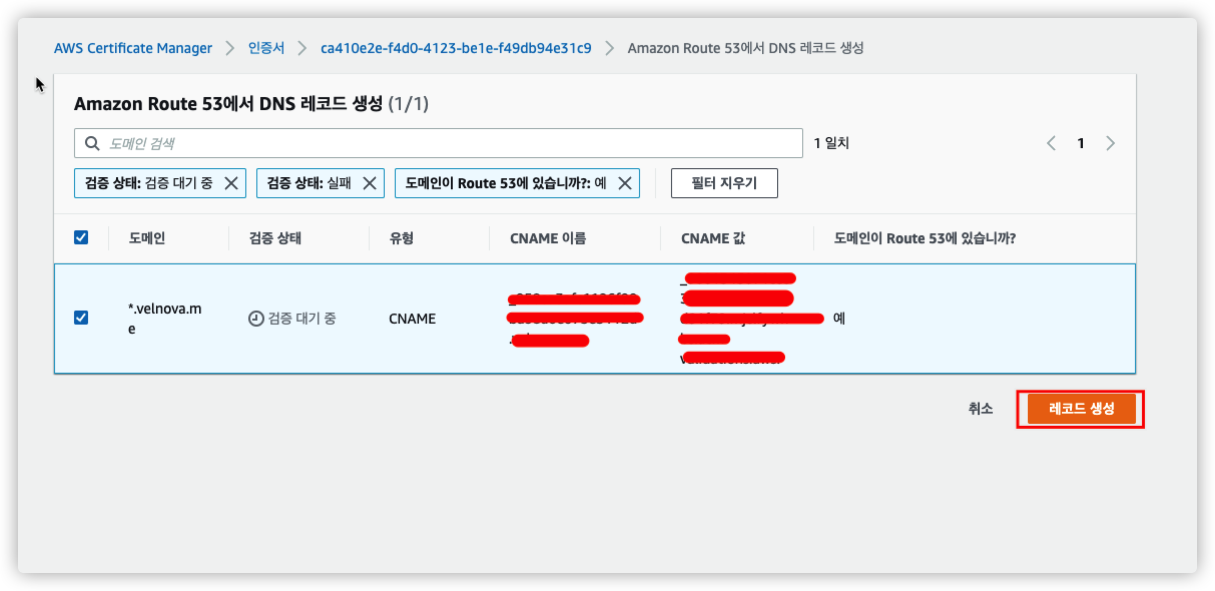 또 마지막으로 외부에서 구매한 도메인을 Route53 + ACM과 연동한다.