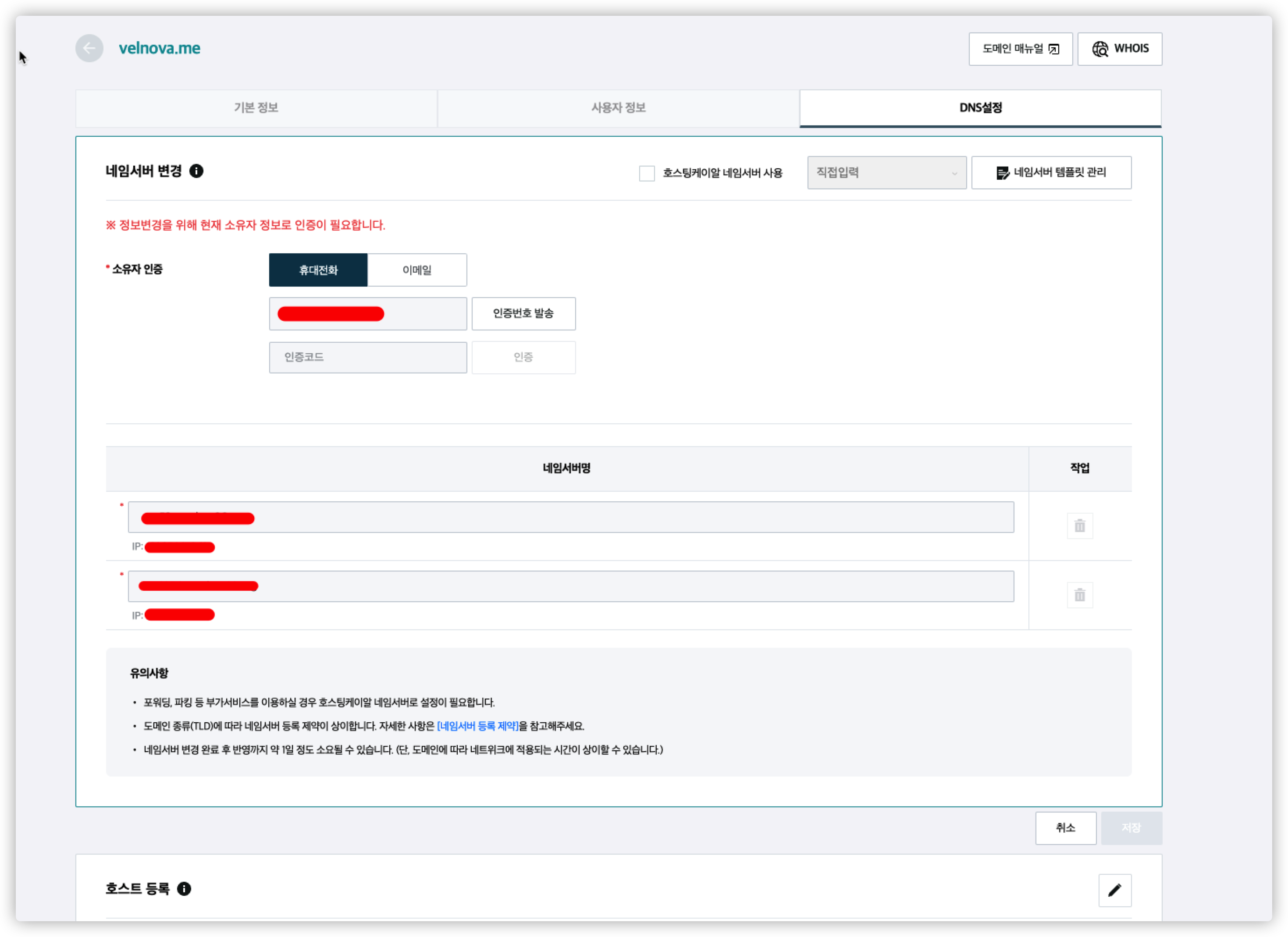 다음으로 호스팅케이알 네임 서버를 Route53의 값(4개)으로 변경해준다.