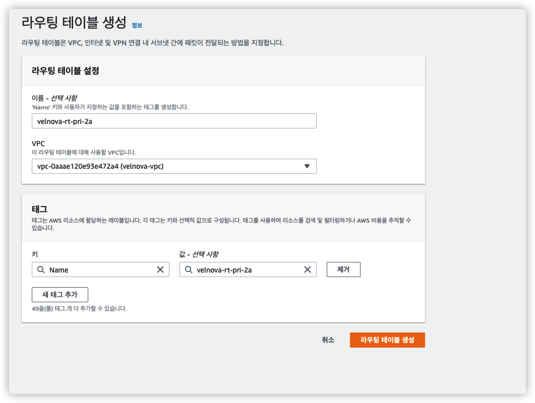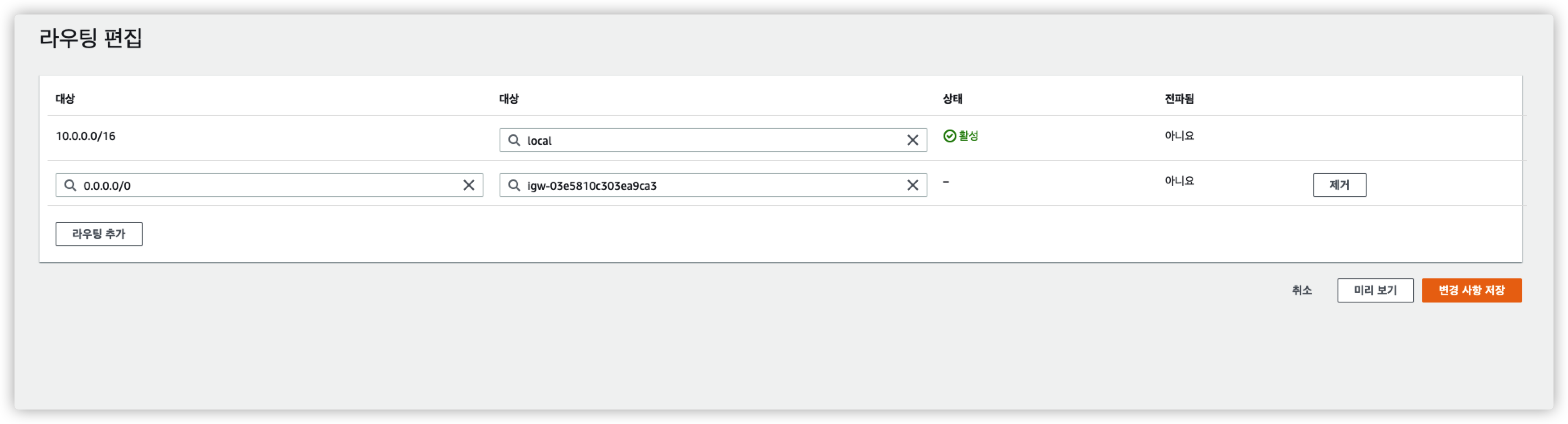 이 라우팅 테이블은 이름만 변경해서 사용하겠다.