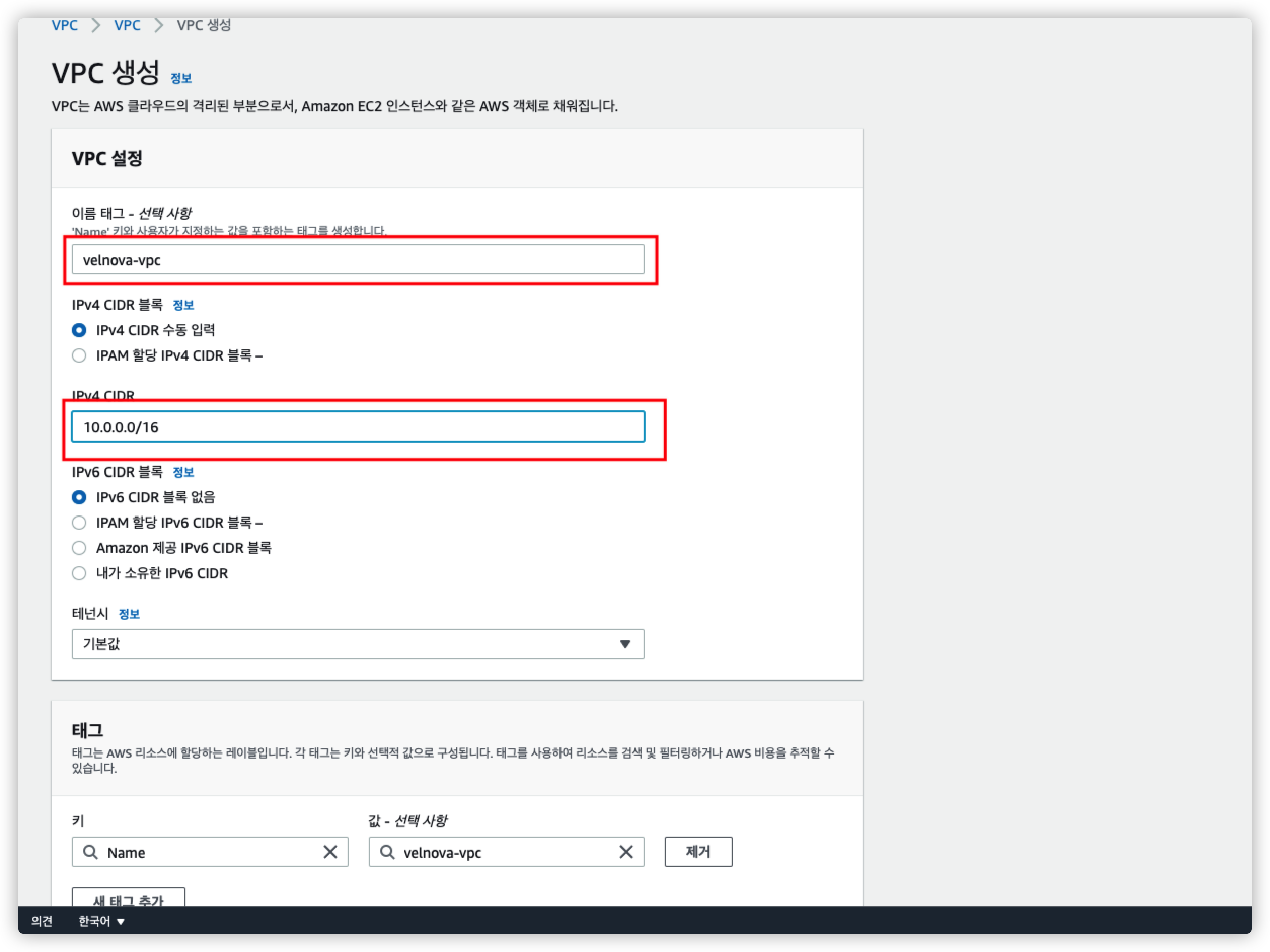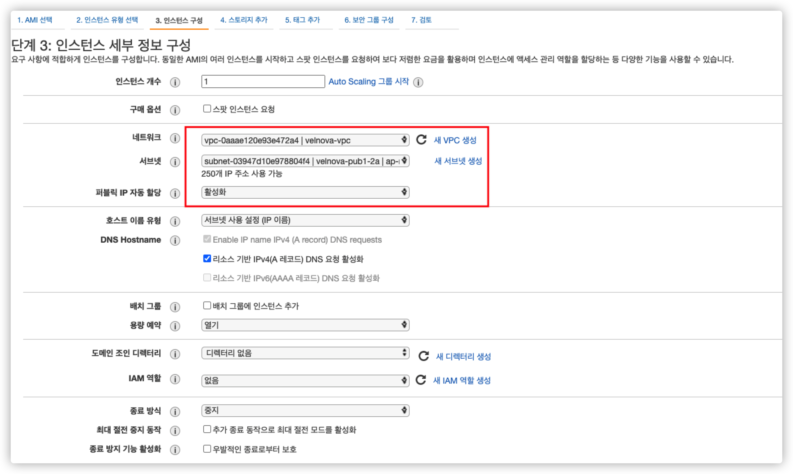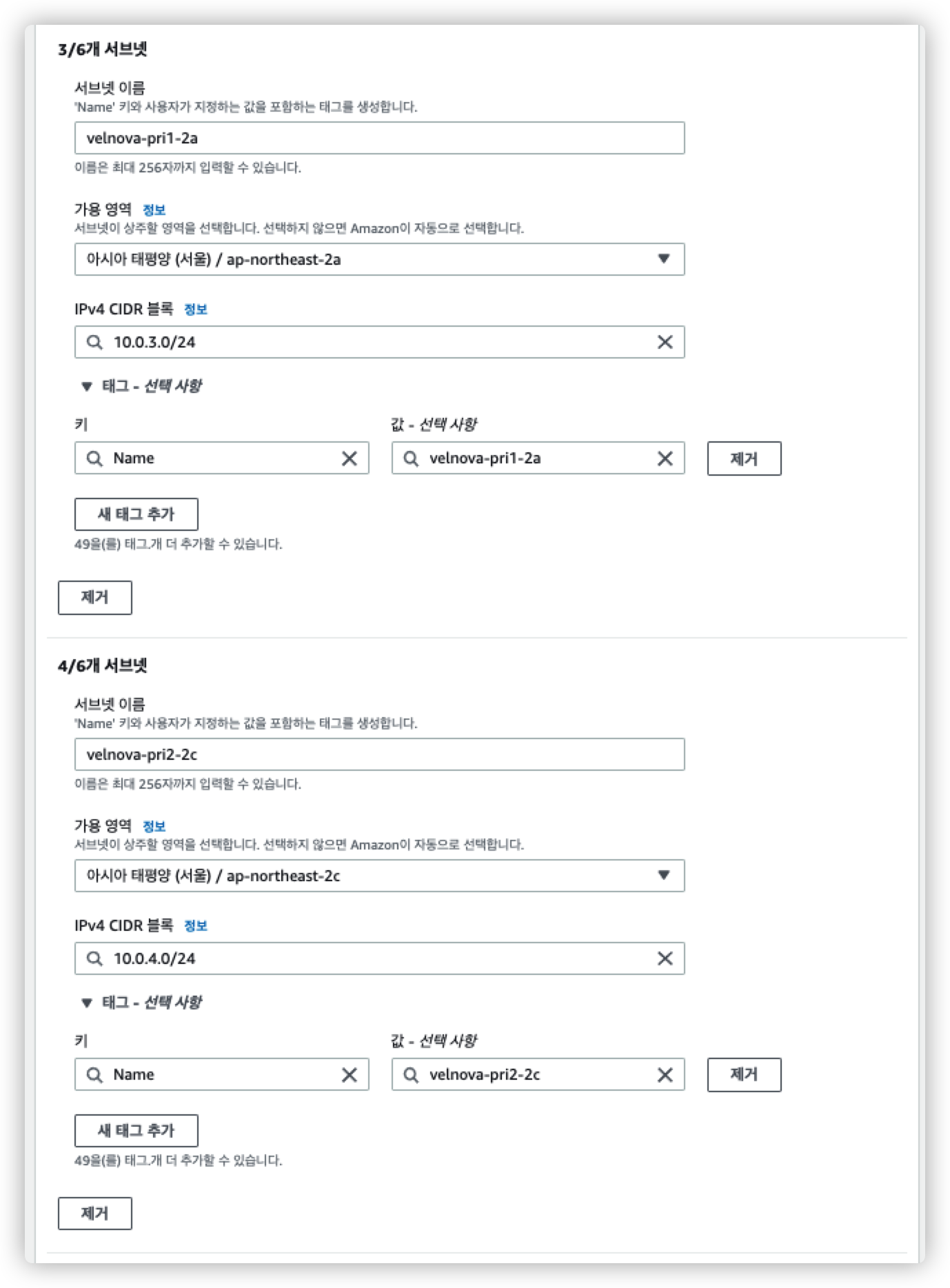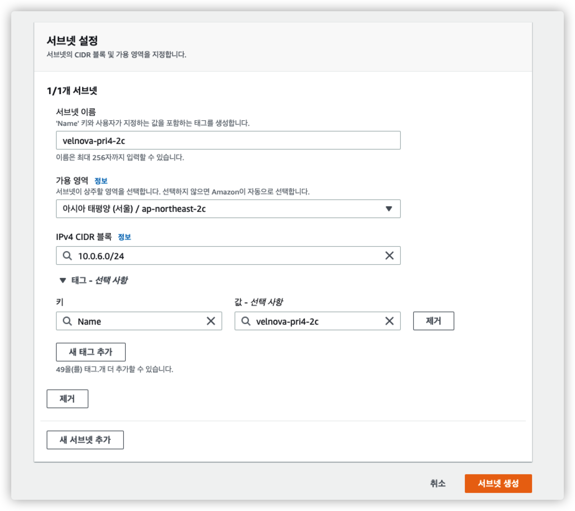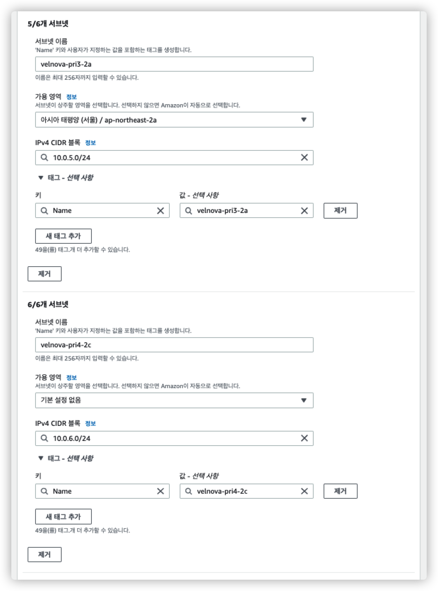 velnova-pri4-2c을 만드는 과정에서 가용 영역을 기본 설정 없음으로 잘못 선택하였다. 꼭 2c로 선택해주자.