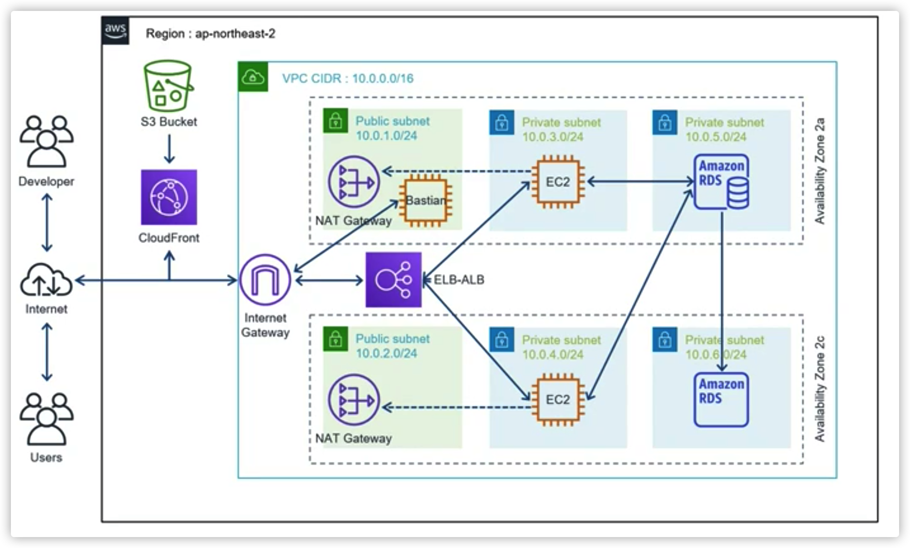 https://www.inflearn.com/course/aws-%ED%81%B4%EB%9D%BC%EC%9A%B0%EB%93%9C-%EC%9D%B8%ED%94%84%EB%9D%BC-%EA%B8%B0%EB%B3%B8 강의 중 아키텍쳐를 첨부하였습니다.
