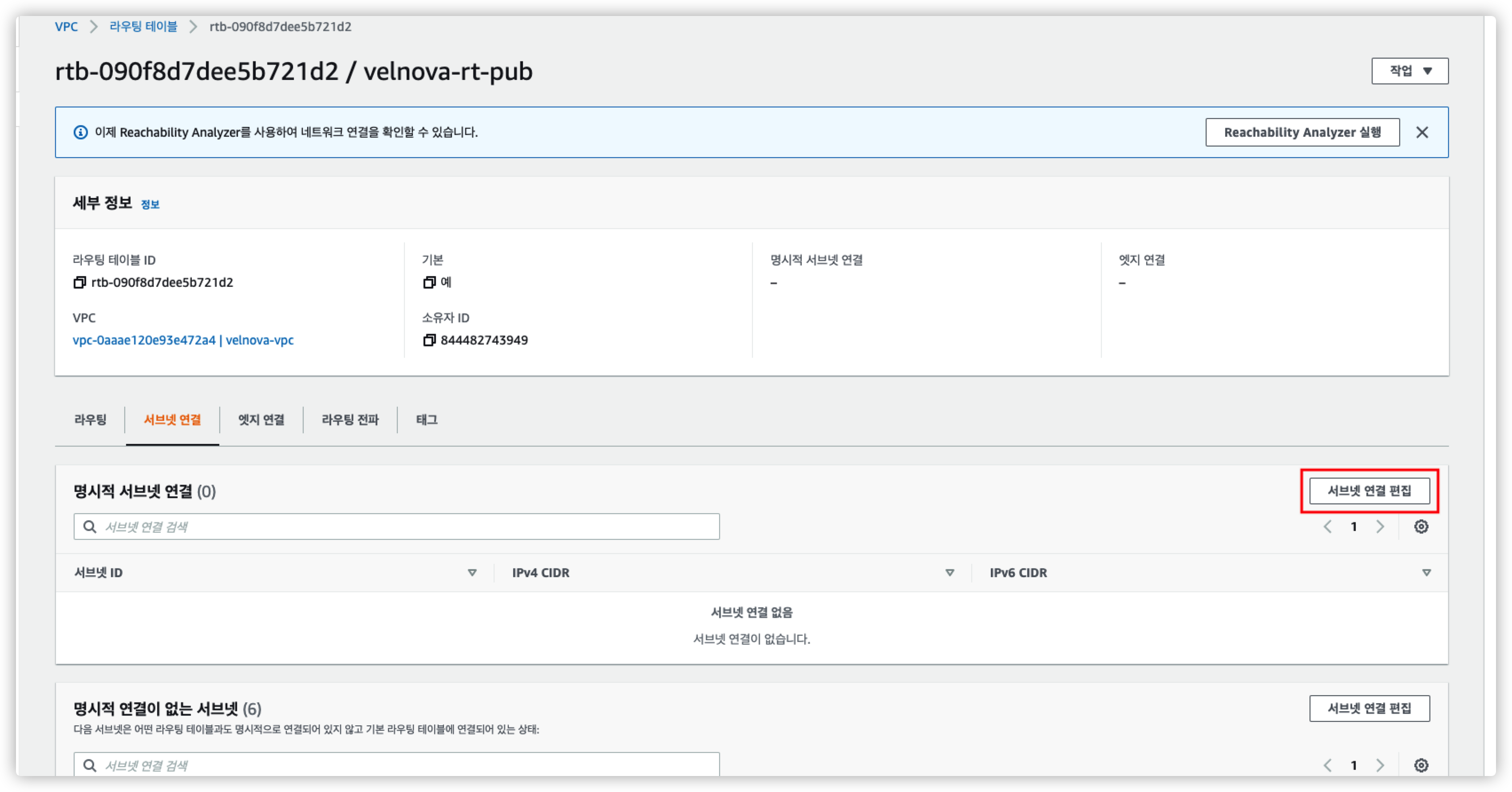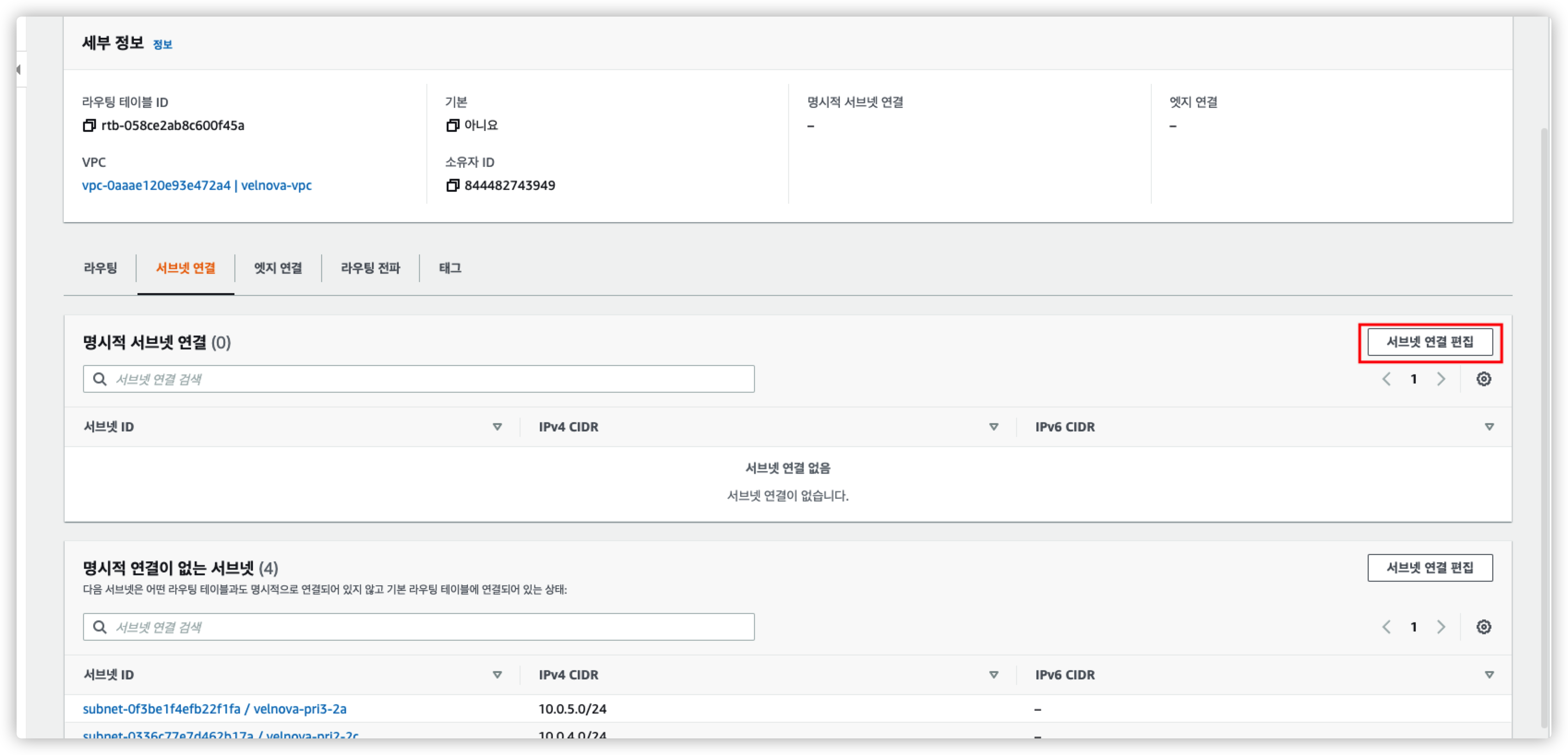 인터넷을 사용할 수 있게 public subnet을 명시적으로 연결해준다.