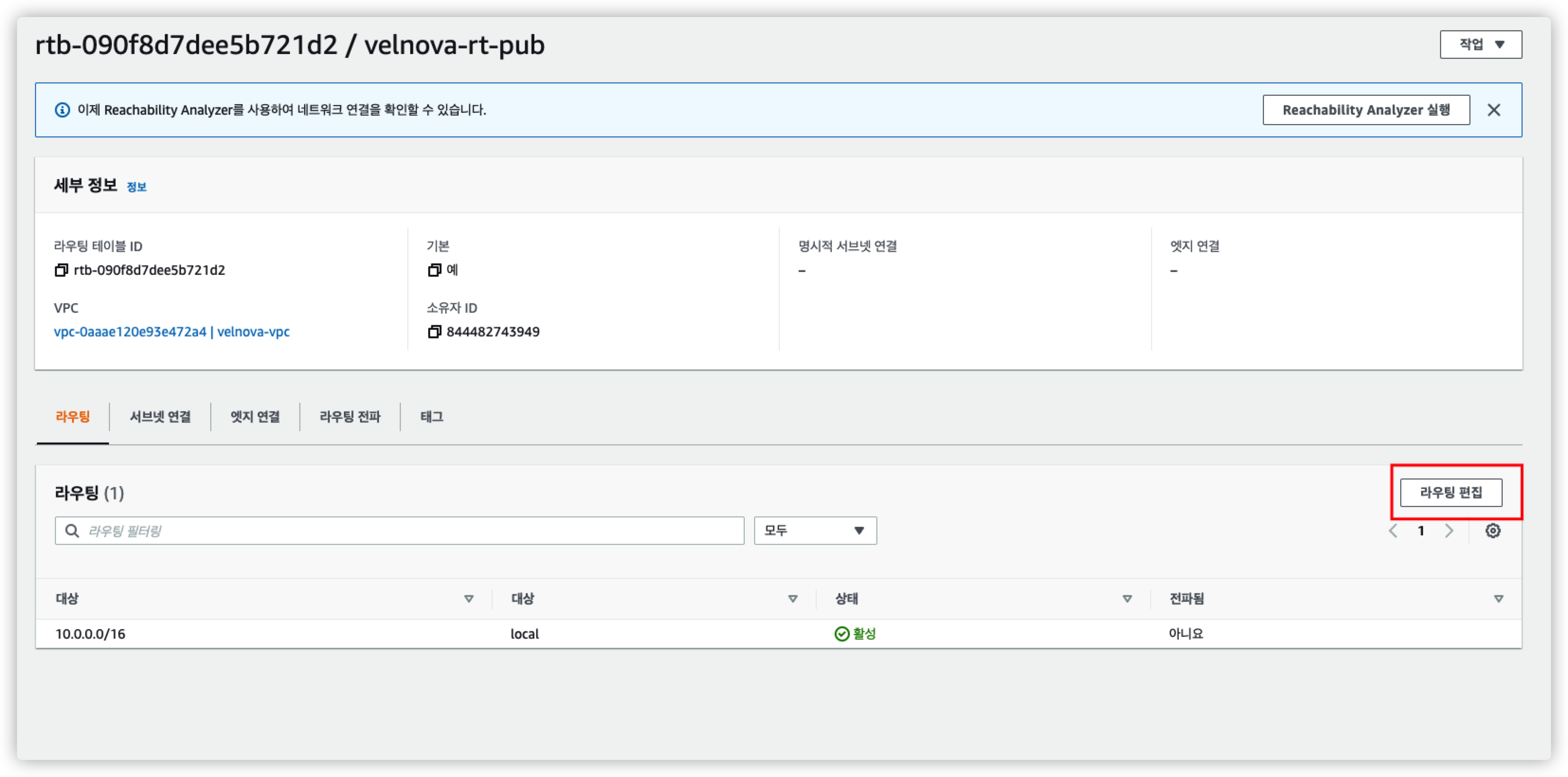 이 라우팅 테이블은 이름만 변경해서 사용하겠다.